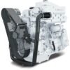 John Deere 4045TFM85 Marine Diesel Engine Features and Benefits:* Water cooled turbocharger and exhaust manifold- Cooler and quieter environment for vessel and crew* Either-side service- Oil fill and dipstick combinations- Remote oil filter for easier service access- Application and service flexibility to provide installation convenience plus fast and easy maintenance* Heat exchanger or keel-cooled- High-capacity heat exchanger designed for reliable operation in adverse conditions- Integrated expansion tank, heat exchanger and exhaust manifold- Keel cooler or heat exchanger options provide application flexibility* High torque and low rated RPM- Enables the engine to turn larger propellers at lower speed for best efficiency- Excellent vessel control and maneuvering- Lower rated rpm limits vibration and noise for better crew comfort* Replaceable wet-type cylinder liners- Hardened and precision machined for long life* Corrosion resistant components- Provides engine protection from the effects of seawater* Fuel system- Electronically controlled rotary fuel injection pump with variable timing resulting in excellent fuel economy and excellent performance- Self diagnostics and protection- Electronic instrument panel with plain text messaging